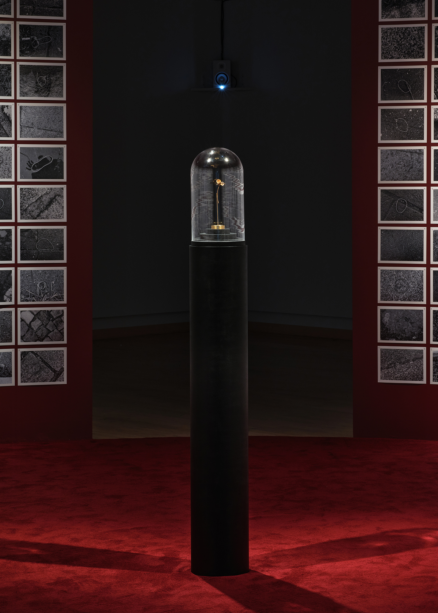 The installation’s visual components, featuring six hundred images of rubber bands that Hansdóttir encountered and spontaneously photographed while taking walks over severalyears, are mounted on concave walls that visually allude to the gallery’s large circular window. The photographed objects and the walls they are mounted on echo elements of circularity in the exhibition space that houses them, blending distinctions between the objects being viewed and the space that they are being viewed in. In this deft but subtle move, Hansdóttir and Hansson invert historically dominant formalist aesthetic theories (rooted in European enlightenment thought) that privilege the concrete representational or formal significance of artworks over other, perhaps more subtle, aspects of the encounter with art.